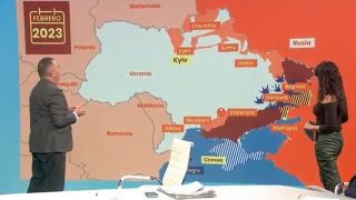 Un año más tarde, los ataques se centran principalmente en lazona del Donbás. "Rusia podría querer hacer una ofensiva pero no tiene con qué. Una ofensiva rusa es romper un frente, ensancharlo y tener unas unidades en segunda línea que puedan penetrar con profundizar para conseguir un cambio sustancial de la situación. Y Ucrania tampoco. Por eso estamos en una situación de frente estabilizado".