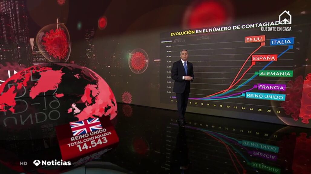 Llama la atención la curva de infectados de Reino Unido, que ya es el sexto país del mundo, con más de 14.000 infectados por coronavirus, incluido su primer ministro, Boris Johnson.