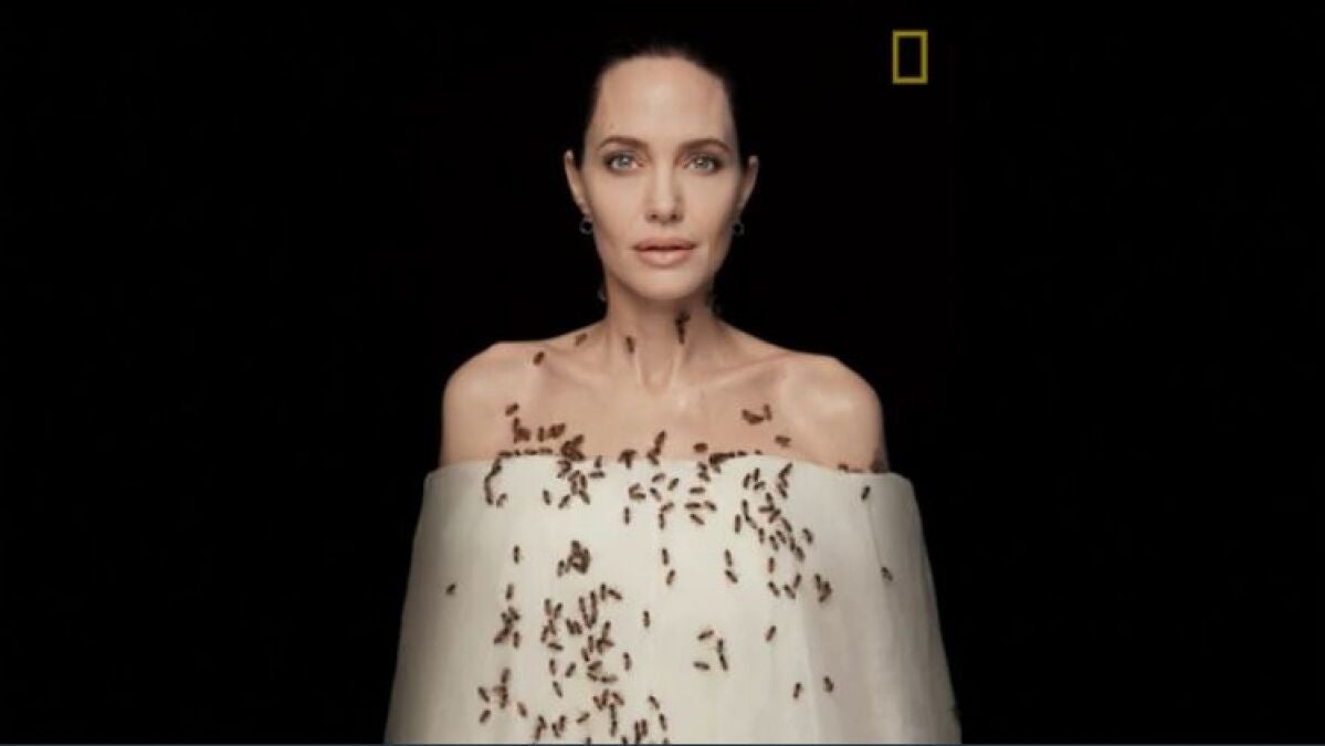 Angelina Jolie se cubre el cuerpo de abejas para evitar su desaparición