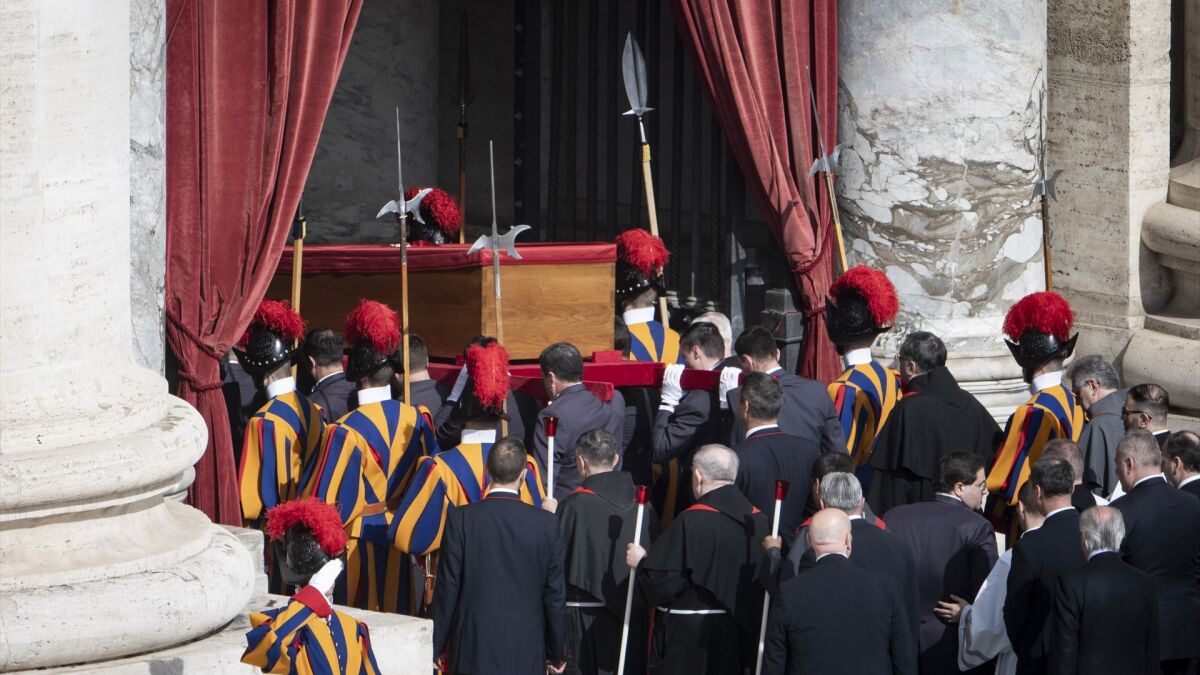 En la mañana de este miércoles, el féretro del papa Francisco ha sido portado desde la Capilla de la Residencia de Santa Marta a la Basílica Papal de San Pedro por catorce hombres romanos y laicos que fueron elegidos por el propio pontífice. Tras la media hora de procesión para recorrer los 200 metros que separan la residencia de la basílica y que ha recorrido la Plaza Santa Marta y la Plaza de Protomartiri Romani, rumbo al Arco delle Campane para salir a la Plaza San Pedro, donde el féretro ha entrado en la Basílica Vaticana atravesando la puerta central.