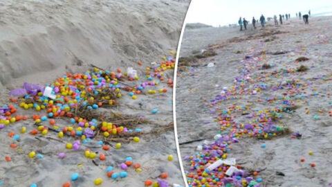 Aparecen miles de regalos de huevos Kinder esparcidos en una playa alemana