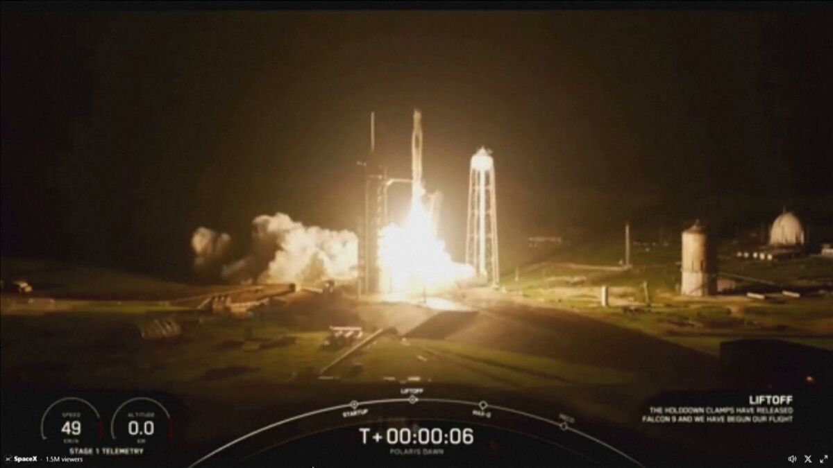Tras varios retrasos, la mañana de este martes ha despegado desde el Centro Espacial Kennedy en Cabo Cañaveral (Florida, EE UU) la misión 'Polaris Dawn', de Space X.