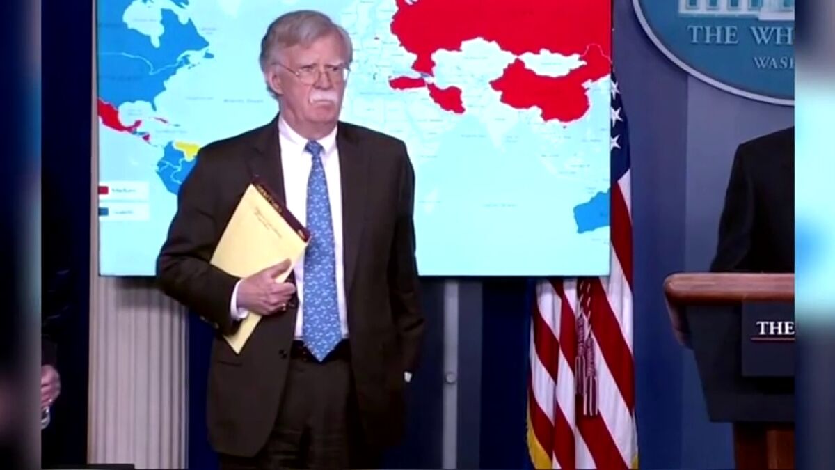 El asesor de seguridad nacional de Estados Unidos, John Bolton, tenía escrito en su cuaderno "5.000 tropas a Colombia" durante la rueda de prensa en la que la Casa Blancaanunció sanciones contra la compañía estatal Petróleos de Venezuela (PDVSA). En una ampliación de fotografías tomadas por diversos medios de comunicación durante la rueda de prensa se aprecian dos inscripciones en el cuaderno de Bolton: la primera reza "Afganistán, bienvenidas las negociaciones" de paz con los talibanes, mientras que la segunda dice "5.000 tropas a Colombia".