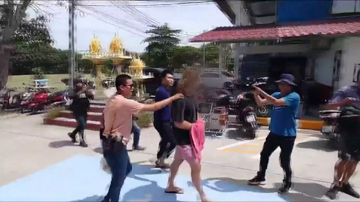 Así abandona Daniel Sancho la comisaría en Tailandia: con las manos bajo una manta roja y rodeado de cámaras