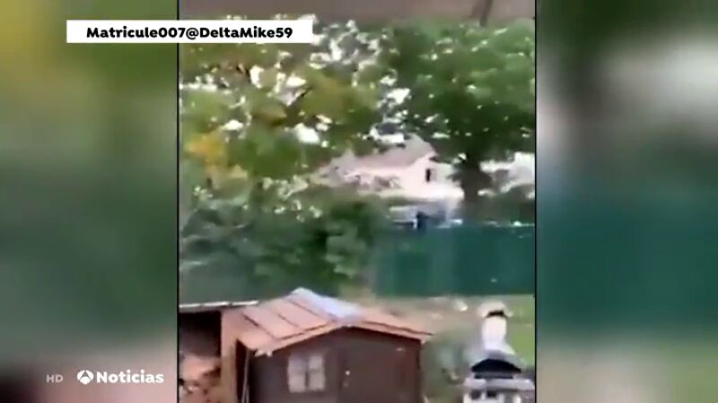 Este es el momento en que la policía acorrala al presunto autor del atentado terrorista ocurrido anoche en Paris. Llevaba un cuchillo y una pistola de bolas. Los agentes le dispararon varias veces y lo abatieron, después que gollara a un profesor de secundaria.