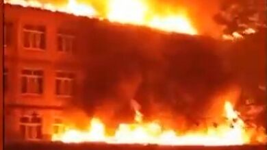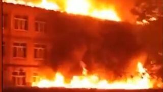 Así arde un colegio tras el impacto de uno de los proyectiles rusos en mitad de la guerra con Ucrania