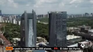 La cascada artificial cae desde un rascacielos de 108 metros y cuesta 76 euros la hora de electricidad.