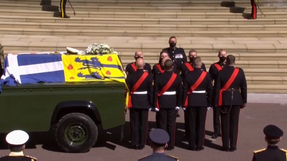 Los restos mortales serán depositados en el panteón real bajo la capilla de San Jorge, adyacente al castillo de Windsor. El cuerpo ha asido trasladado en un todoterreno Land Rover flanqueado por sus cuatro hijos; Carlos, Eduardo, Ana y Andrés y por representantes de la Marina.