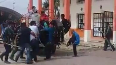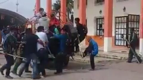 Varias personas actuaron de forma violenta en el municipio mexicano de Las Margaritas, rompiendo el mobiliario del edificio donde trabajaba el alcalde, además de atarle a una camioneta y arrastrarle por el suelo.
