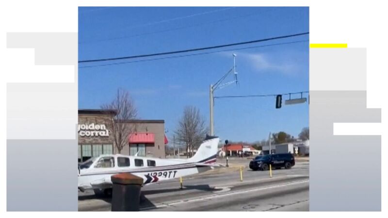 Aterrizaje de película en una avenida abarrotada de coches, en plena hora punta, en el estado de Georgia
