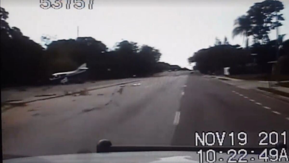 Una avioneta con dos personas a bordo perdió el control y tuvo que realizar un aterrizaje de emergencia en un área residencial de Florida. Las cámaras de seguridad instaladas en la carretera captaron el momento, publicado por la Oficina del Sheriff del Condado de Pinellas en Facebook.