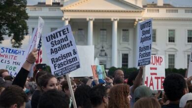 En su primera declaración, Trump denunció lo que definió como una "indignante exhibición de odio, intolerancia y violencia de todos los bandos". Un día después, la Casa Blanca sacó un comunicado para aclarar que Trump condenaba "todas las formas de violencia, intolerancia y odio", incluidos "los supremacistas blancos, el Ku Klux Klan y todos los grupos extremistas".