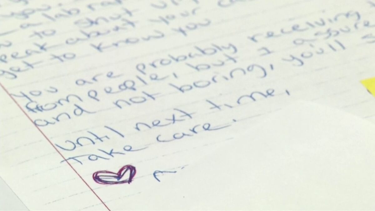 "Nadie más está lidiando con tus demonios, lo que significa que quizás derrotarlos podría ser el comienzo de tu significado, amigo", escribió una joven neoyorquina de 18 años en una carta decorada con corazones rosas.