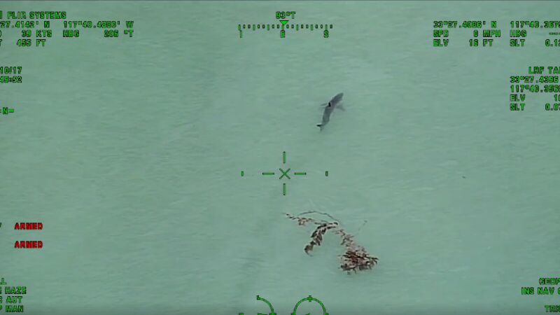 Un helicóptero de policía avistó 15 tiburones blancos en la playa de Capistrano, en California. En el vídeo, grabado por el departamento de policía del Condado de Orange (California), se ve a los tiburones alrededor de la línea en la que se practica surf, muy frecuente en esta playa.