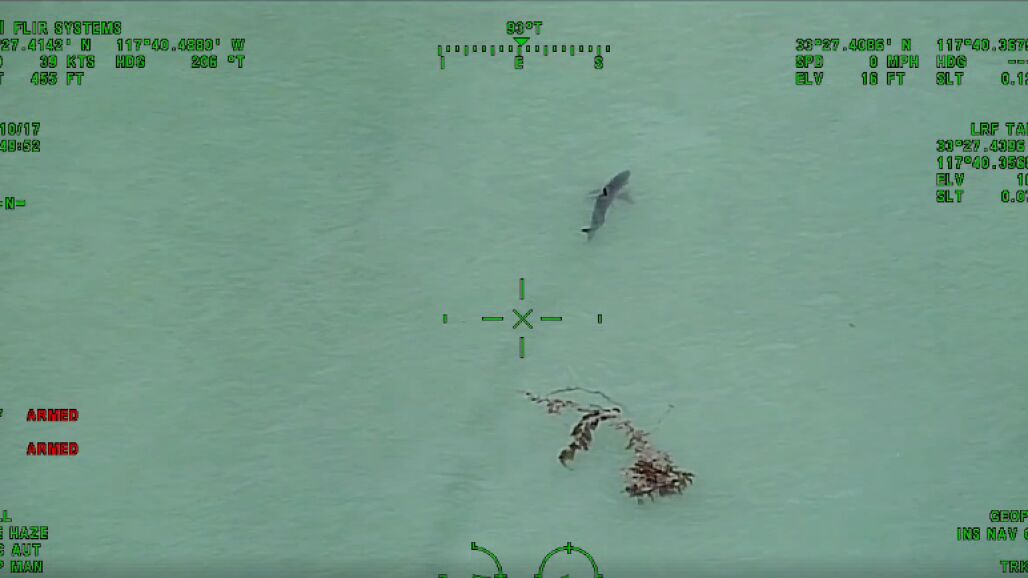 Un helicóptero de policía avistó 15 tiburones blancos en la playa de Capistrano, en California. En el vídeo, grabado por el departamento de policía del Condado de Orange (California), se ve a los tiburones de más de metro y medio de largo alrededor de la línea de playa en la que se practica surf, muy frecuente en esta playa.