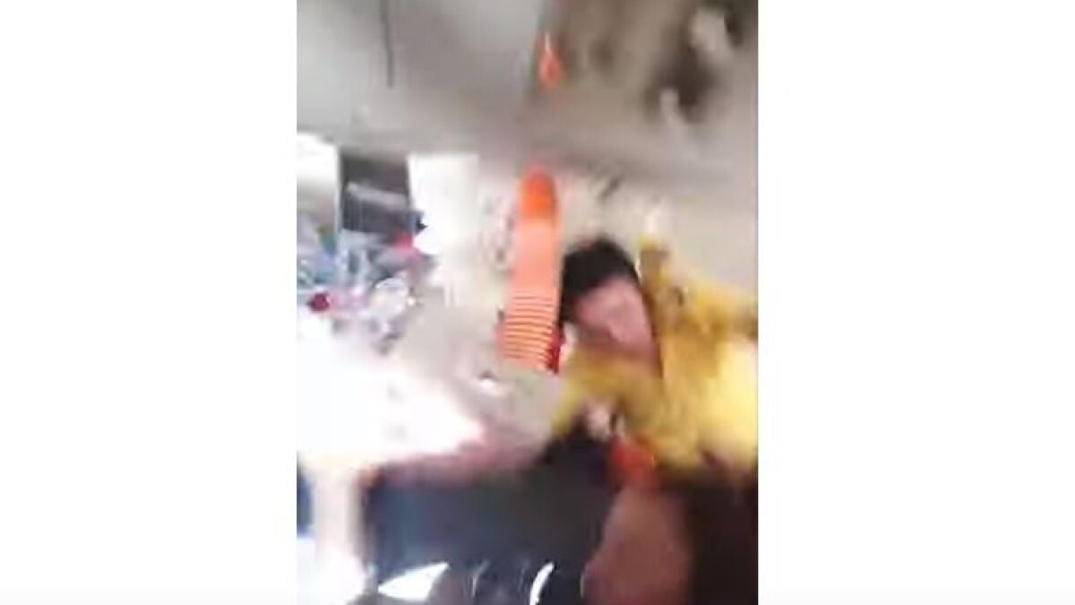 Las imágenes recogieron el momento en el que una azafata se golpea violentamente contra el techo del avión junto al carro de las bebidas, que se derraman sobre los pasajeros.