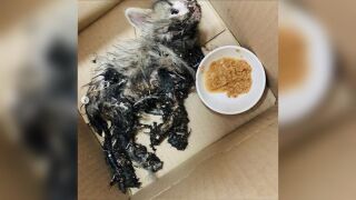 Bañan en pegamento a una gata de un mes y la abandonan en la calle
