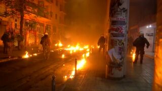En paralelo, el barrio de Exarjia se llenó de barricadas improvisadas y decenas de anarquistas utilizaron la Universidad Politécnica como base, desde la cual lanzaron a los agentes numerosos cócteles molotov y otros objetos, como mármoles arrancados de las paredes de la institución.