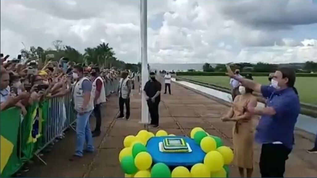 Jair Bolsonaro, presidente de Brasil, ha cumplido 66 años rodeado de una multitud de personas, sin medidas de seguridad ni distancia social, que han querido felicitar al mandatario en persona a la entrada del Palacio de la Alvorada, su residencia oficial en Brasilia.