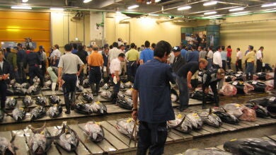 El famoso mercado, el mayor del mundo, es una popular atracción turística que alberga una subasta de atún a primera hora de la mañana, y cuya localización estaba programada para ser trasladada para los Juegos Olímpicos de Tokio 2020.