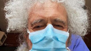 El guitarrista de Queen publicó una foto en su cuenta de Instagram, en la que aparece en el hospital con mascarilla, pero aclarando que no se debía al covid-19. "No, el coronavirus aun no me contagió, gracias a Dios".