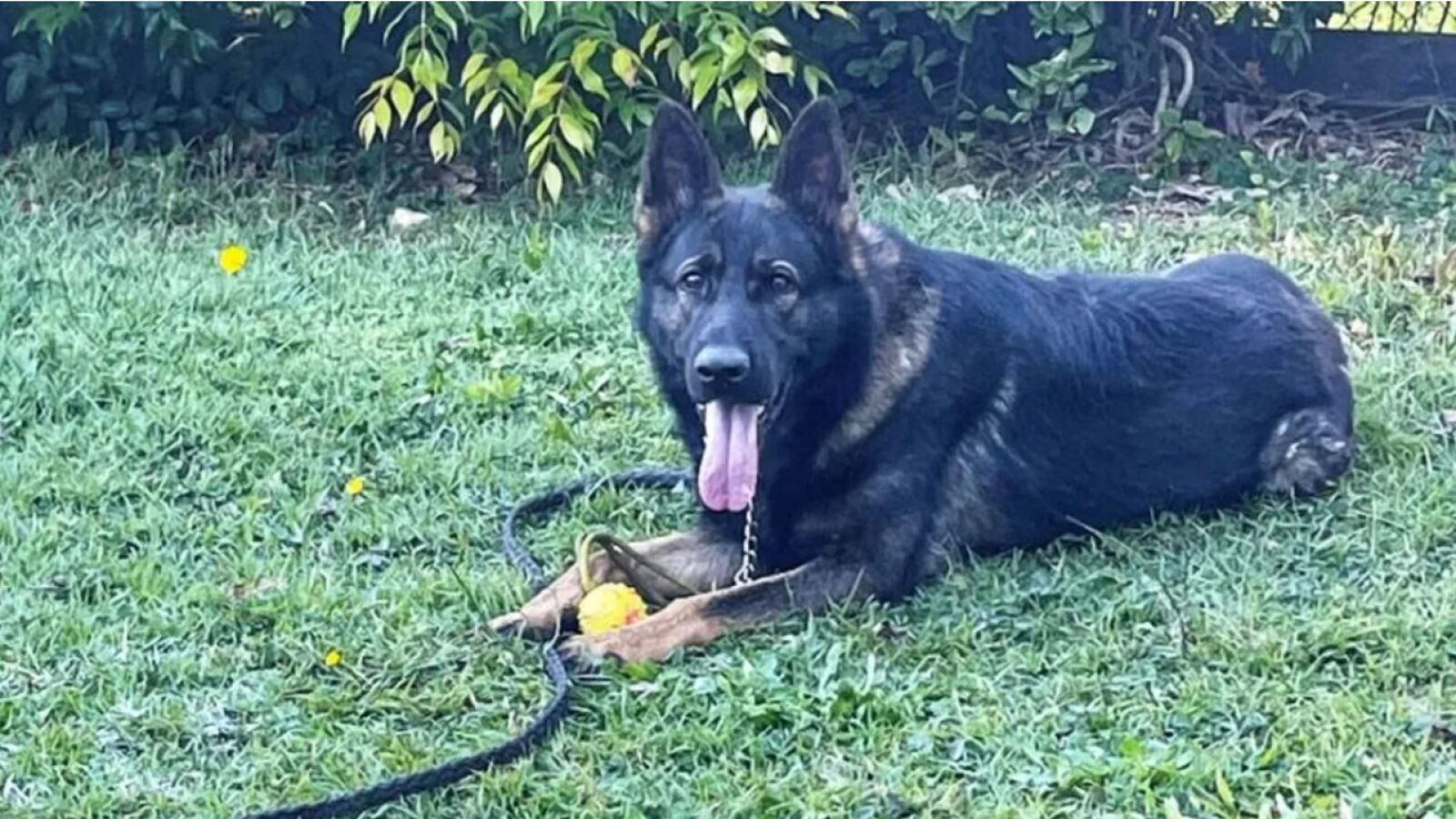 Se trata de un pastor alemán de tres años con una piel negra. Lleva un arnés de rastreo y una correa larga. El animal desapareció mientras realizaba una operación policial, cuando rastreaba a un delincuente a través de unos matorrales en Greenwood Village Road en Redbank Plains.