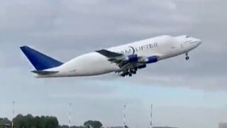 Un Boeing 747 Dreamlifter perdió una rueda en medio del despegue mientras salía del aeropuerto de Taranto.