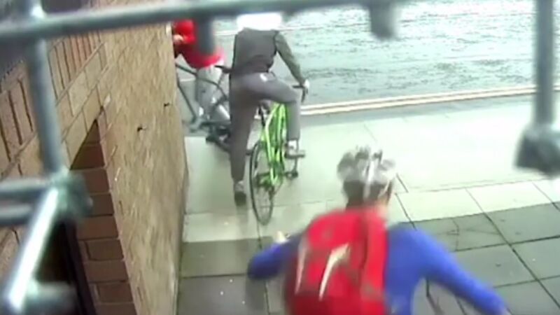 Una cámara capta el momento en el que roban una bicicleta pero su dueño lo impide con un placaje