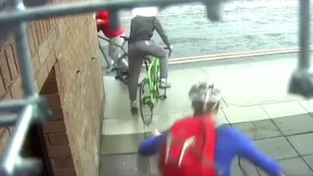 Las cámaras de seguridad de una tienda de bicicletas han captado un intento de robo en tan solo diecisiete segundos en Dublín. El ciclista dejó su bicicleta apoyada en la pared durante un momento para entrar en el establecimiento y comprar unos productos. Al ver que no los tenía, salió y fue justo en ese momento cuando sorprendió a un joven robando el ciclo.