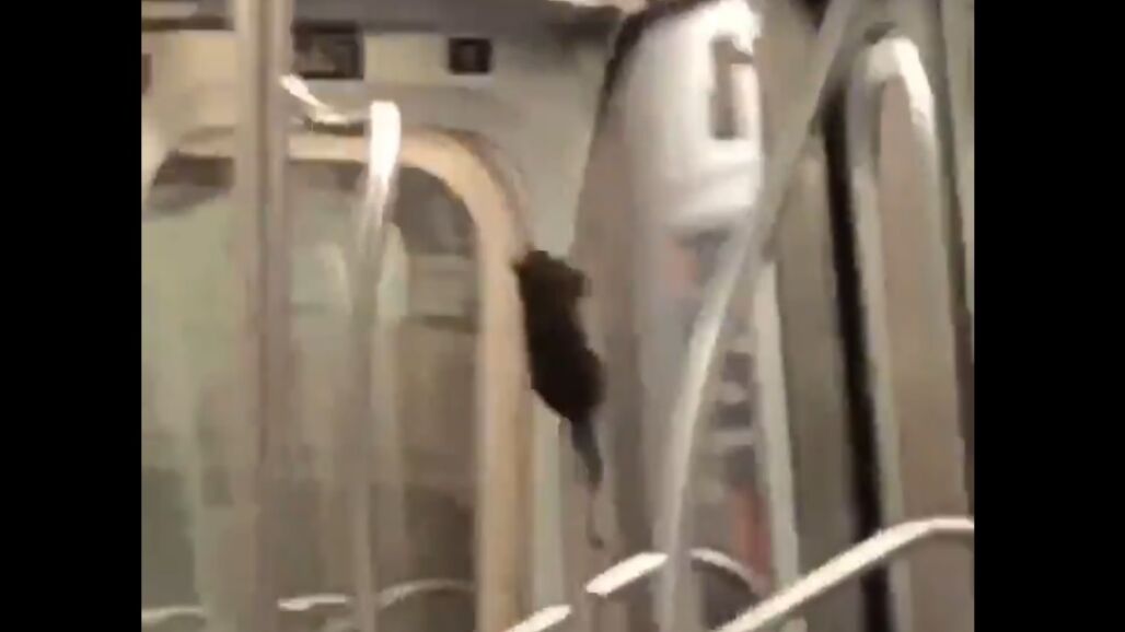 Captan en vídeo a una rata deslizándose por una barra de sujeción del metro de Nueva York