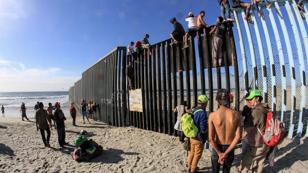 Los migrantes llegaron a la ciudad mexicana de Tijuana este martes por la mañana y de inmediato se trasladaron a la línea divisoria para comprobar que están a un paso de Estados Unidos.
