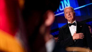 Su discurso duró 10 minutos pero no hubo una sola alusión a la guerra en Gaza. Joe Biden, vestido con esmoquin y pajarita negra, optó por mirar hacia casa. El presidente de Estados Unidos dedicó la mayoría de sus dardos al exmandatario, Donald Trump.