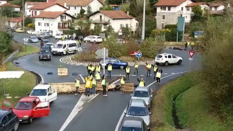 La rebelión contra el aumento de los impuestos al diésel y el alto precio de la vida ha llegado a la frontera de Biriatou, junto a Irún.