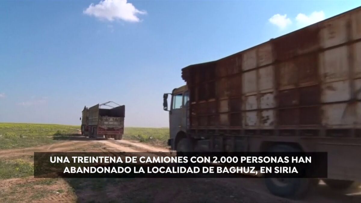 Una treintena de camiones con cerca de 2.000 personas han abandonado la localidad de Baghuz, en Siria, llevando principalmente mujeres y niños familiares de los yihadistas que continúan allí. Es la última zona controlada por el Estado Islámico en la provincia de Deir Ezzor.