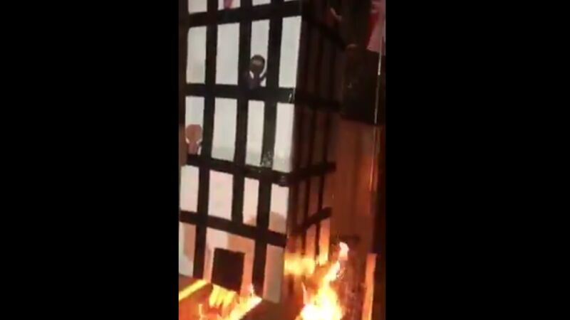 El vídeo, difundido en redes sociales, mostraba un cartón de la torre y tenía dibujos de algunos de los residentes asomados a las ventanas de las viviendas y con cara de terror. Mientras se quema, las personas que hay alrededor se les escucha reír y hacer bromas al respecto.
