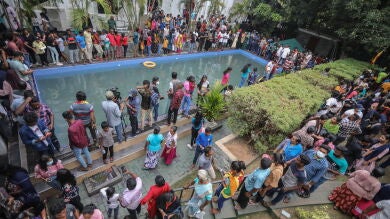 Mientras tanto, en el palacio de Colombo la gente permanece y hace uso de las instalaciones de la residencia presidencial, como se puede ver en el vídeo de la parte superior.