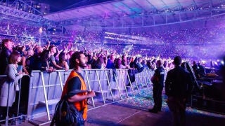 Frente al escenario en el que actuaba la banda Coldplay. Así acabaron su intrépida experiencia dos amigos que decidieron colarse en multitud de sitios con chalecos reflectantes, 'walkie-talkies' y bastante cara.