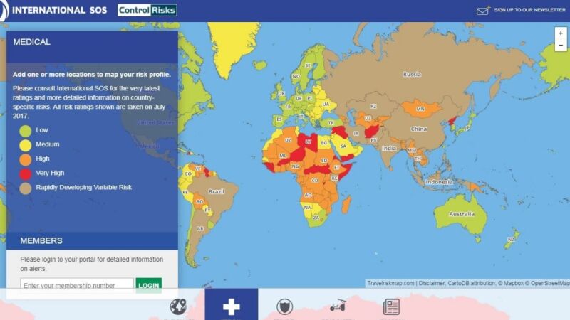 International SOS y Control Risks han lanzado el 'Travel Risk Map 2018' (Mapa de Riesgo de Viajes 2018) en el que se señalan los países más peligrosos para viajar como turista en el próximo año. El mapa se clasifica por colores, según las zonas donde existe mayor o menor riesgo para los viajeros en términos de seguridad vial, protección y cuestiones médicas.