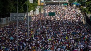 Decenas de miles de personas han vuelto a la calle en Caracas para recordar al Gobierno que ya han cumplido 50 días de protestas, y que seguirán resistiendo. Esta gran marcha, convocada bajo el lema 'Somos millones', sirve además para rendir homenaje al medio centenar de opositores muertos en las últimas semanas en enfrentamientos con la policía.
