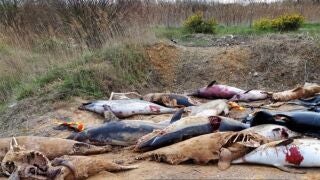 Cientos de cadáveres de delfines mutilados se han encontrado amontonados en la playa francesa Les Sables d'Olonne, en la costa atlántica de Francia, cerca de La Rochelle. Los voluntarios de la ONG Sea Shepherd France señalan que son algunos de los miles de animales que cada año mueren accidentalmente por la industria pesquera en la costa del país.