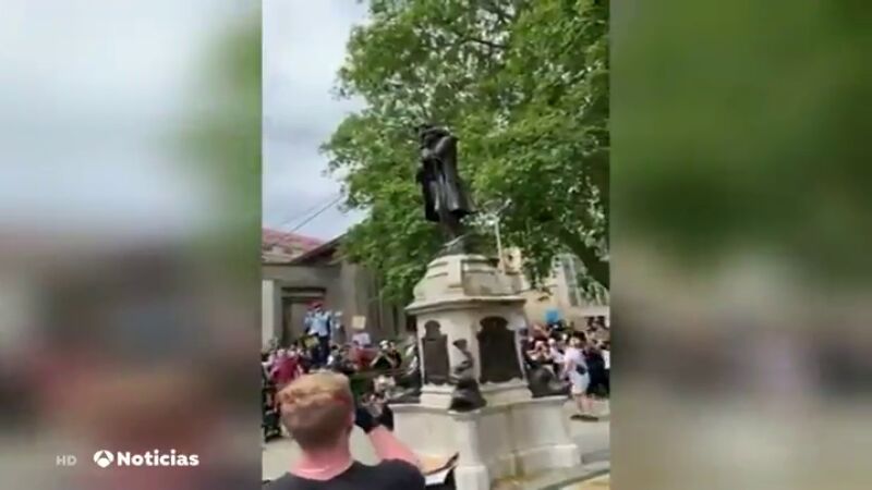 Varios manifestantes contra el racismo han logrado tumbar la efigie de uno de los personajes hasta hace poco más venerados de la ciudad. En el siglo XIX amasó su fortuna traficando con seres humanos y su estatua ha acabado arrojada al río.