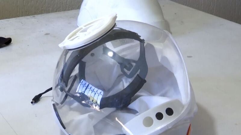 El casco está compuesto por una estructura plástica y tiene lleva un sistema eléctrico que ventila el aire al respirar y evita que penetre el coronavirus.