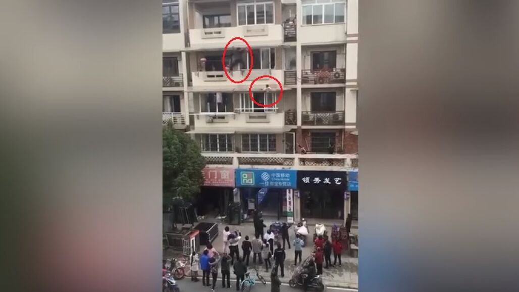 Un desconocido se ha convertido en el héroe local de la ciudad china de Hangzhou después de escalar hasta el tercer piso de un edificio para salvar a una niña de tres años que se había quedado colgando de una cornisa y estaba a punto de caer.