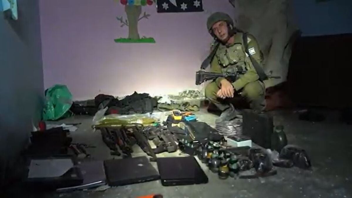 Las Fuerzas Armadas de Israel encuentran un centro de mando donde operaban las milicias de Hamás bajo un hospital infantil de Rantisi. Han visto numerosas armas y explosivos.