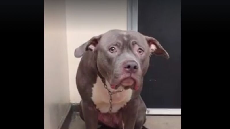 Electra es un pit bull terrier que fue abandonado por sus dueños y acogido en un refugio hasta que alguien lo adopte. En un vídeo subido a Facebook por Lolys Menchaka, quien ayuda al albergue Inland Valley Humane Society, explica que Electra tiene cuatro años y que "representa el rostro de la tristeza y la realidad en los refugios".