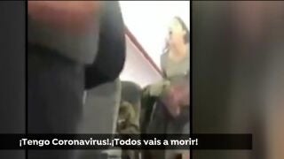Ante la orden para que abandonase el avión por parte de la tripulación, la mujer parece toser ante un asistente de vuelo, que le grita: "fuera ahora"
