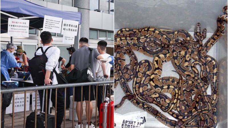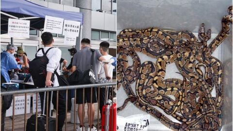 Algo insólito ha ocurrido en el control de Aduanas de Huangguang, que separa China continental de Hong Kong. Un pasajero ha sido interceptado cuando transportaba más de 100 serpientes escondidas en el interior de sus pantalones.