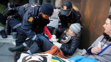 La policía noruega ha detenido este miércoles a la activista medioambiental Greta Thunberg durante una manifestación en Oslo. Thunberg y otros han bloqueado una de las puertas del Ministerio de Finanzas de Noruega, por lo que fueron levantados por agentes de policía y los sacaron fuera del área mientras otros manifestantes coreaban consignas.
