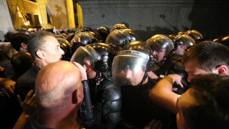 No obstante, la protesta se mantuvo y finalmente la Policía intervino con gases lacrimógenos y balas de goma para disolver a los manifestantes. Según el Gobierno georgiano, los disturbios que se prolongaron durante buena parte de la noche se han saldado con 240 heridos, entre ellos 80 policías. Dos de los manifestantes han perdido un ojo.