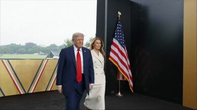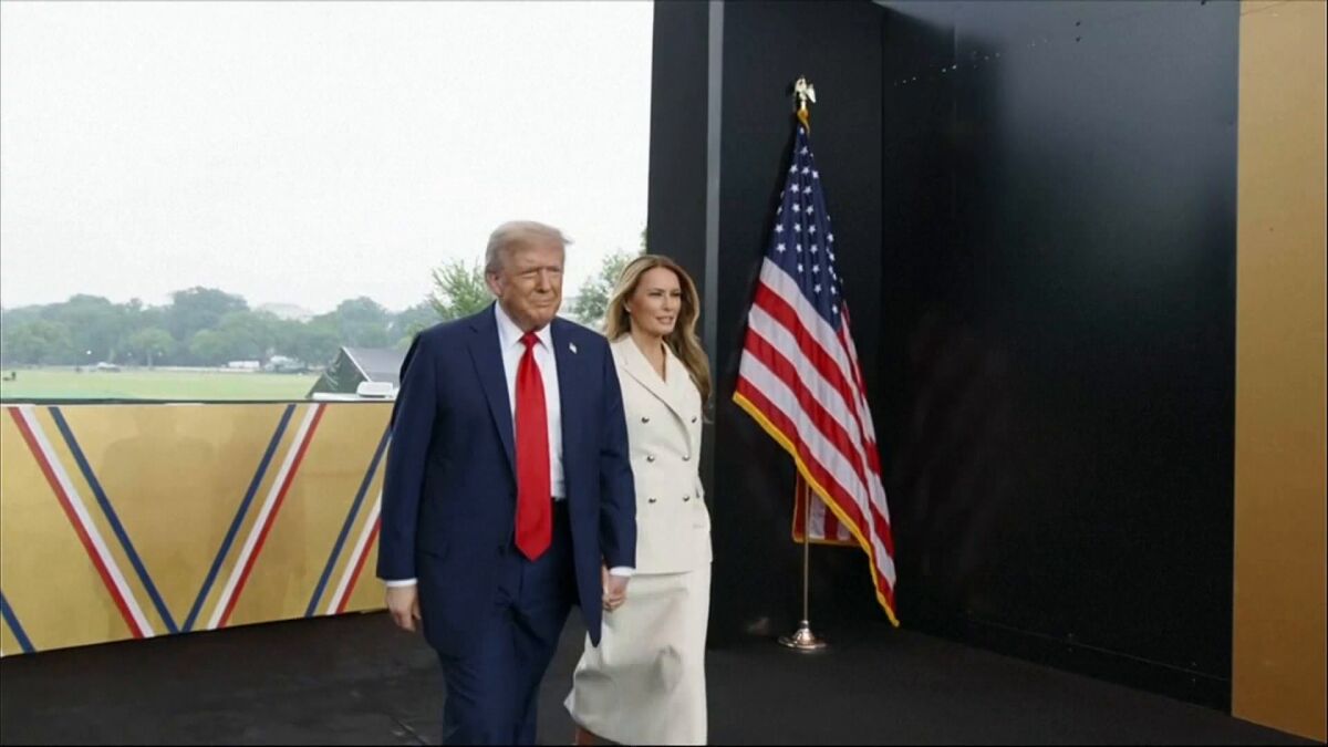 Donald Trump llegó al desfile entre 21 salvas de cañonazos y la multitud coreando "Feliz cumpleaños". Estaba concebido como un gran espectáculo a gusto del republicano. Cazas y helicópteros sobrevolando el obelisco y un desfile por todo lo alto para celebrar los 250 años del Ejército de Estados Unidos y los 79 de Trump. Solo la lluvia no acompañó y obligó a adelantar los saltos de los paracaidistas. Todo muy marcial excepto la descoordinación de los soldados. Se notó la poca costumbre de desfilar que tienen en Estados Unidos. Pero eso no pareció importarle al republicano ni a una primera dama muy sonriente que vieron pasar desde vehículos antiguos a drones o robots de última generación.